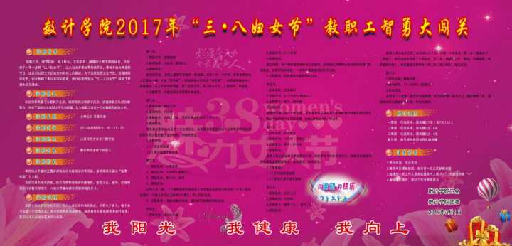 为庆祝三·八妇女节,丰富公司女教职工文化生活,展示公司女教职工的风采,让全体女教职工过一个健康、快乐、温馨的节日,公司工会于2017年3月4日组织全体女教职工进行“三·八妇女节智勇大闯关”活动。校工会副主席亢健和校工会老师杨柳青出席了闯关活动。必一运动全体女教职工参加了本次活动,部分男教职工到现场为闯关活动捧场。