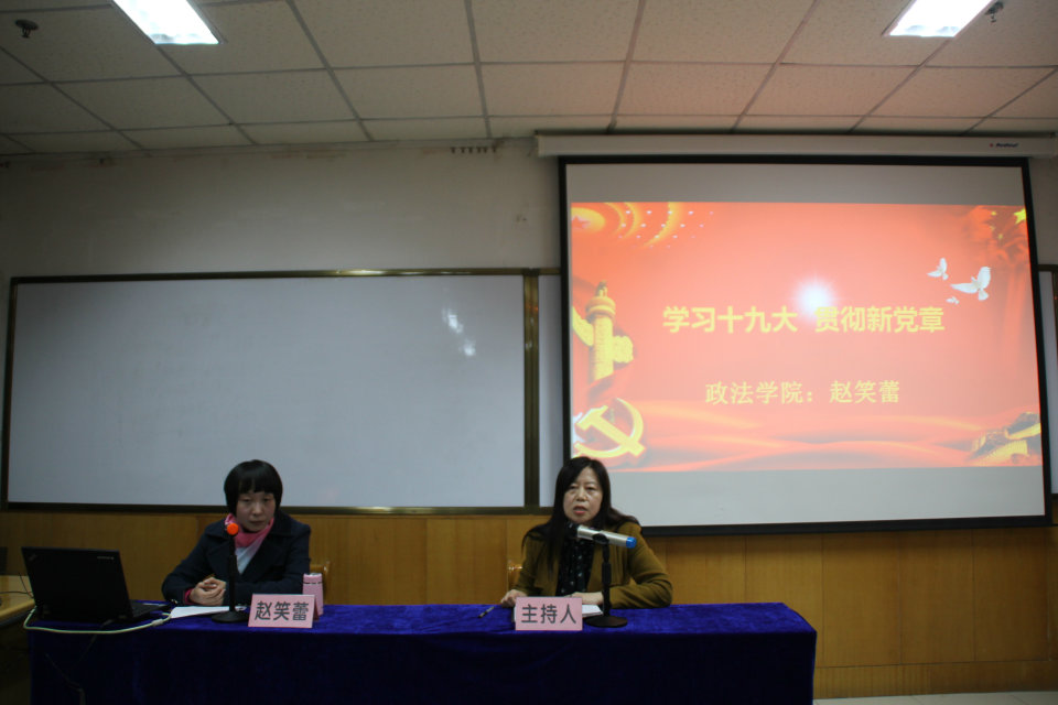 赵笑蕾教授以《学习十九大、贯彻新党章》为主题,从十九大报告的重要任务、现代化的发展和变化、矛盾转变及经济核心问题、新时代中国共产党的历史使命,深刻阐述了十九大的主题和历史性贡献、五年辉煌成就和历史性变革,以及就如何深刻认识和把握习近平新时代中国特色社会主义思想、新时代中国特色社会主义战略目标和战略步骤、新时代中国特色社会主义战略布局、新党章的重大修改等方面进行了深入细致的解读。