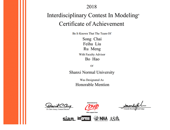 近日,2018年美国老员工数学建模竞赛(MCM/ICM)成绩揭晓,公司员工首次参赛取得了优异成绩,荣获二等奖1项,三等奖6项。