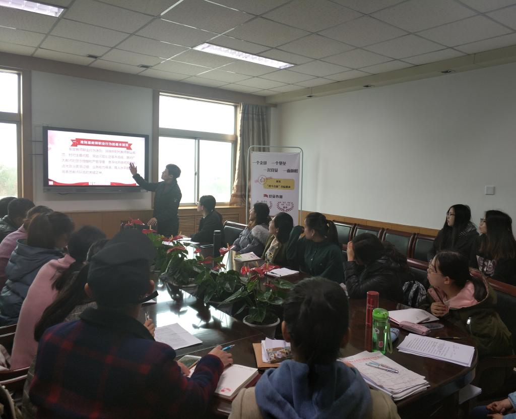 各团支部以“聚精会神学知识”、“集思广益乐讨论”、“深刻领悟来交流”为主题内容,通过召开班会、小组讨论、知识竞答、观看影片等丰富多样的学习形式,带领师范生深刻认识到新时代的教师肩负的责任感、使命感和荣誉感,明确了师德底线,坚定了传承“学高为师,身正为范”精神的信念。