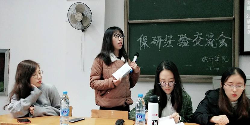 15级的七位优秀推免生依次分享保研经历,详细交流了宣讲会、夏令营、预推免和推免四个阶段的具体内容。朱怡蓉同学就申请方式、考核方式、录取比例等方面做了详细的介绍,并给大家推荐了一些实用的考研公众号;杨凯、杨晓星、姚卓雅同学分别就推免流程中的“宣讲会”、“夏令营”、“预推免”环节进行了介绍;陈博楠和闻艳飞同学向大家介绍了推免的资格和条件,尤其强调了参加各种竞赛的重要性;段霞霞同学结合几所高校的办学特色及专业概况为大家推荐了一些可供选择的高等院校。