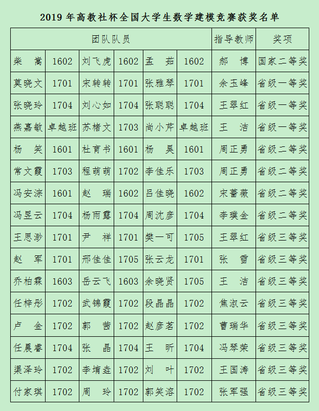 近日,2019年高教社杯全国老员工数学建模竞赛成绩揭晓,必一运动学子再次喜获佳绩,荣获国家二等奖1项,省级一等奖3项,省级二等奖4项。