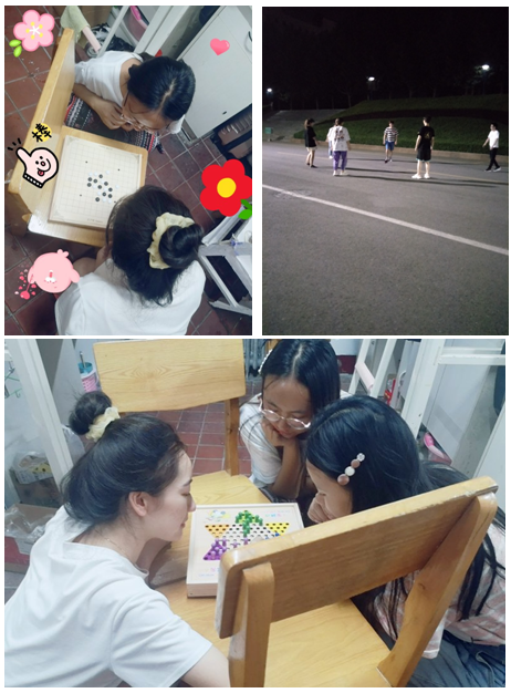 为丰富活跃返校研究生的校园文化生活,公司购买了趣味活动器材,鼓励同学们在课余闲暇时间积极参与益智健体活动。忙碌学习一整天后,在黄昏时分集体活动锻炼,成为同学们一天中最惬意的时光。同学们根据兴趣打羽毛球、跳跳绳、下五子棋,通过轻松有趣的每日活动缓解学习压力、放松身心,增进友谊。