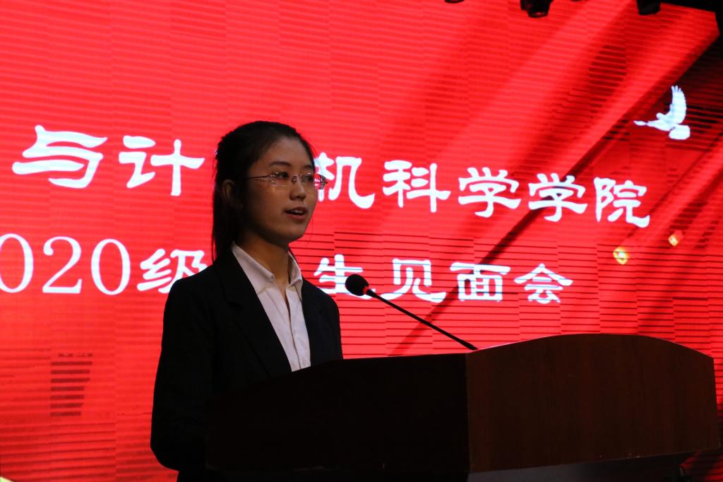 新生见面会在庄严的国歌声中拉开序幕。郝红霞首先对新生们表示了热烈的欢迎,并从有高水平的好学科和好专业、有精心育人的好老师、有积极进取的好学长、有干事创业的好氛围等几个方面对公司团队建设、专业特色、团队力量、就业情况、学科实践竞赛和文体活动成绩作了介绍。她勉励新生要“下苦功夫、求真学问”“放下手机、拿起书本”“胸怀祖国、勇担责任”,牢记习近平总书记对广大青年“爱国、励志、求真、力行”的期望,心中有信仰,脚下有力量,肩上有担当,今日努力学习,明日报效祖国。
