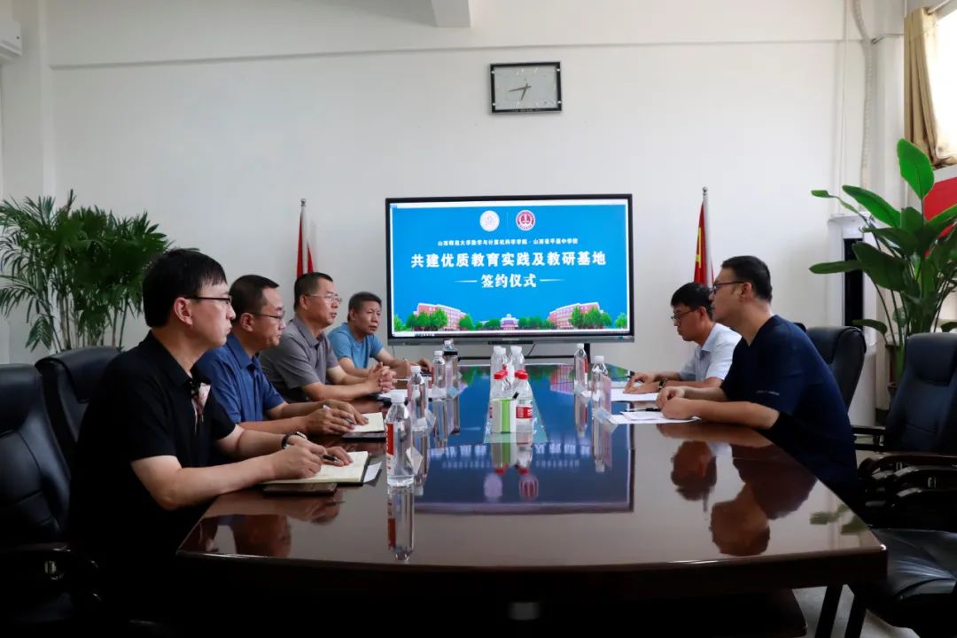 为进一步落实党的二十大精神,更好地推进公司师范生的实践教育工作,2024年6月26日,公司与山西省平遥中学在平遥中学举行签订“共建优质教育实践及教研基地”合作协议签约仪式。平遥中学董事长胡海平,副董事长李文舟,教务处主任李祖桐和教务处副主任田旭春,公司经理助理、副经理李璞金,公共数学教研室主任和本科师范生实习工作负责人王栋等出席签约仪式。平遥中学教务处副主任田旭春老师主持会议。